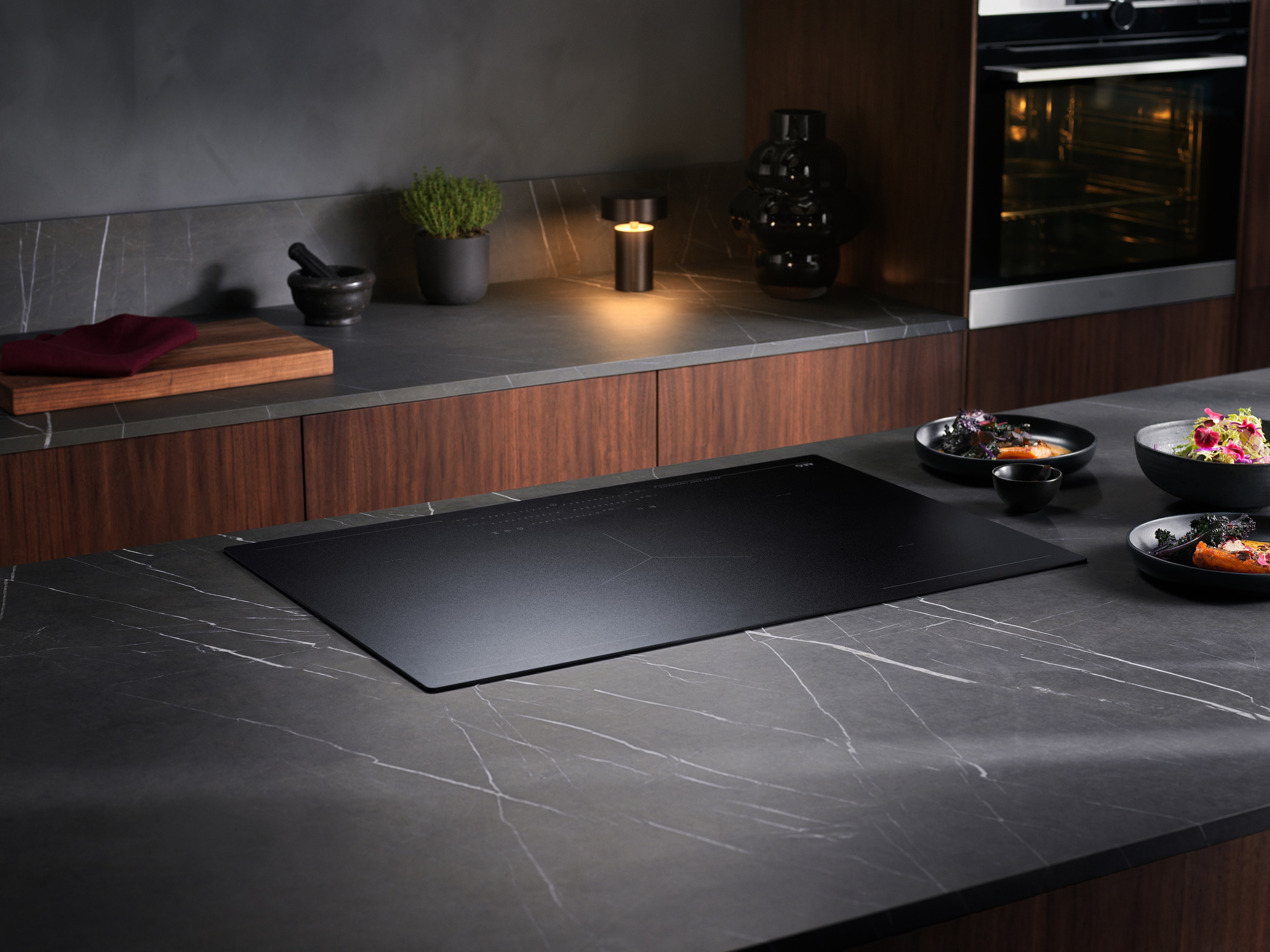 Nejprémiovější volbou AEG v oblasti designu a funkčnosti jsou oceňované indukční varné desky SaphirMatt®. Jejich povrch je až 10x odolnější proti poškrábání než u běžných varných desek, nezanechává otisky prstů a dlouhodobě si uchovává svůj prémiový vzhled. Varné desky SaphirMatt® spolu s novými matně černými odsavači par s výraznou texturou pak vytvářejí dokonalý interiér. Společně formují moderní kuchyni jako sebevědomé vyjádření funkčního designu.*