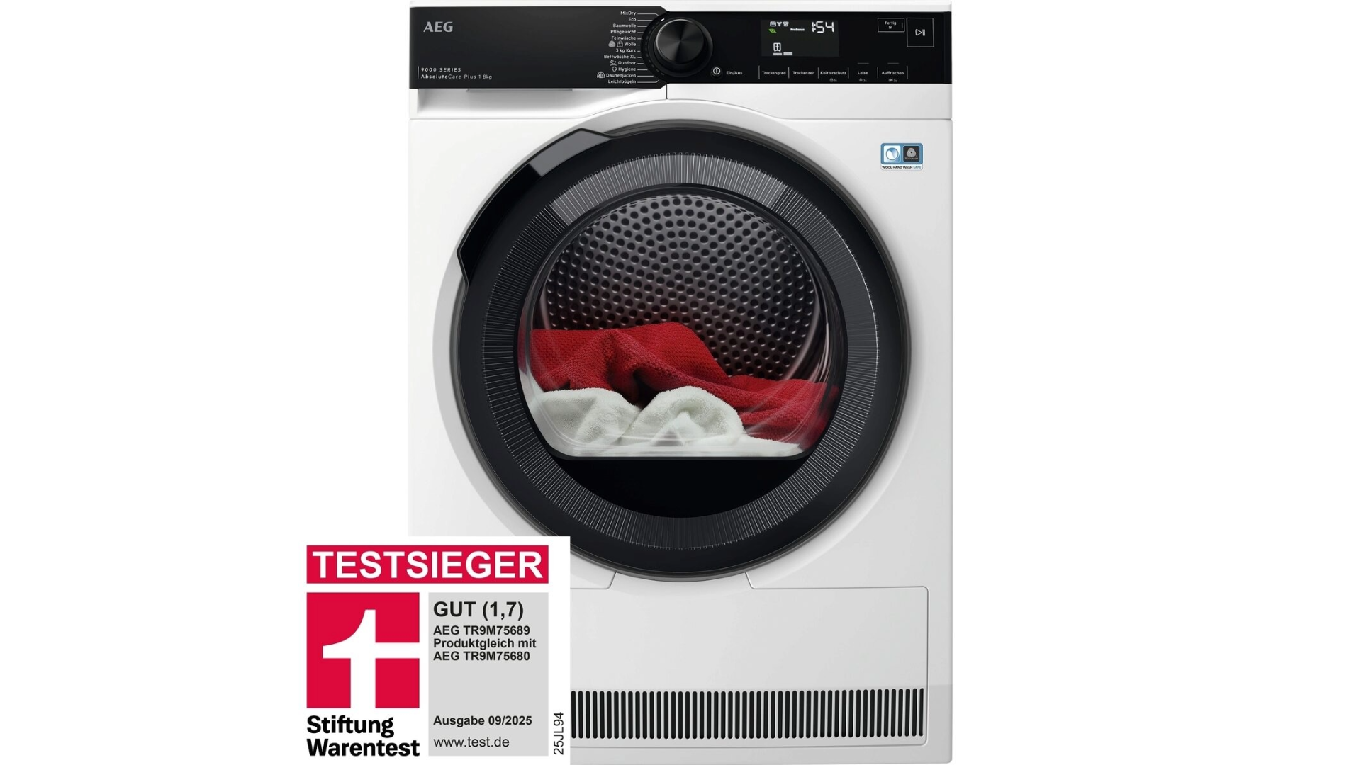 Mit dem 9000 AbsoluteCare® Plus Wärmepumpentrockner ergänzt AEG das Portfolio um eine Lösung, die Präzision und Komfort in den Mittelpunkt stellt. Die 3D-Scan-Technologie passt die Trockenleistung an die Restfeuchtigkeit tief im Gewebe an und ermöglicht so selbst bei Daunenjacken eine gleichmäßige und präzise Trocknung. Das MixDry-Programm trocknet Synthetik und Baumwolle gemeinsam – ohne Vorsortieren und ohne Kompromisse bei der Trocknungsqualität. Zusammen mit dem Testsieg bei Stiftung Warentest bietet das dem Fachhandel starke, vertrauensbildende Argumente für die Beratung am PoS.