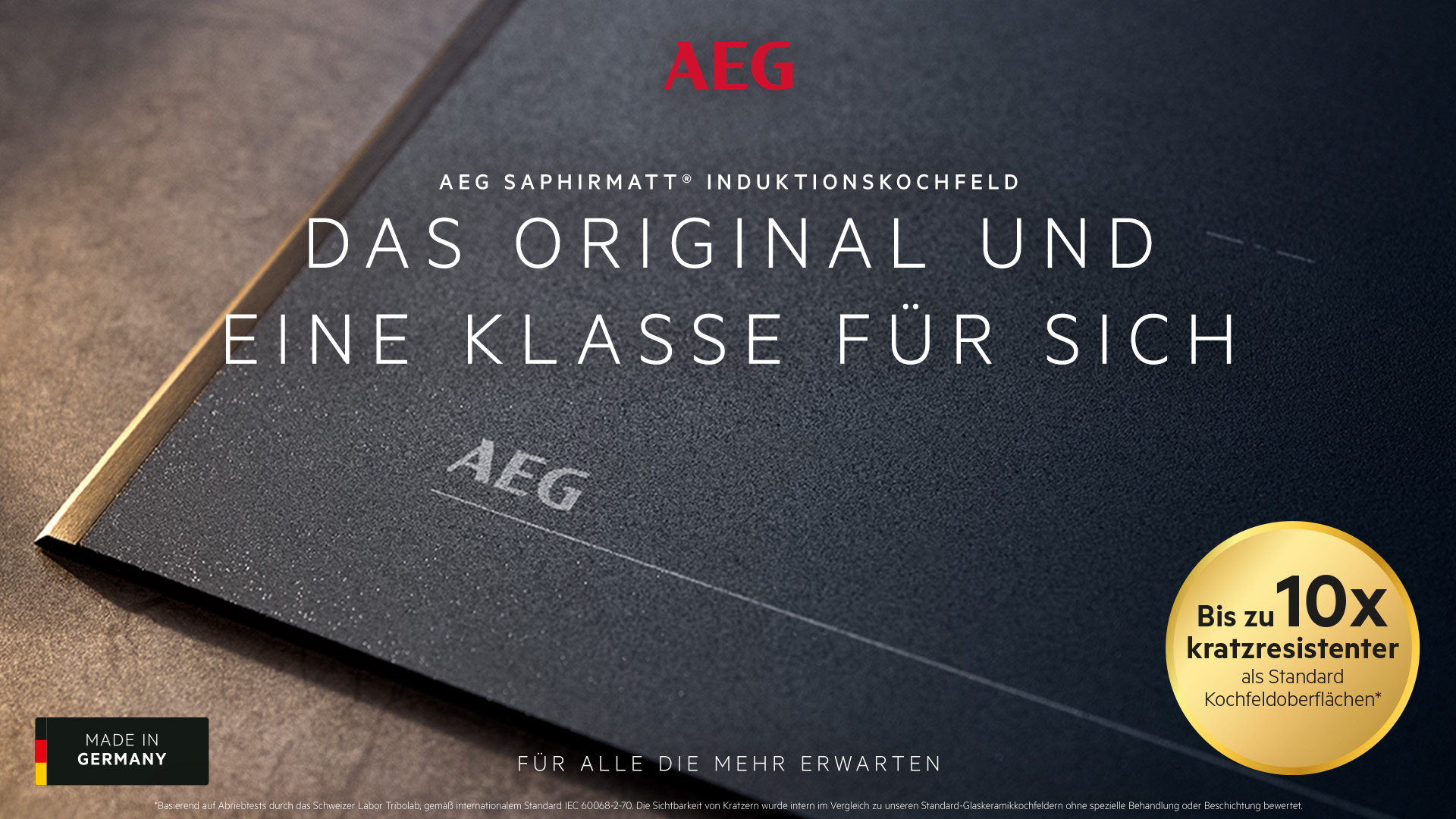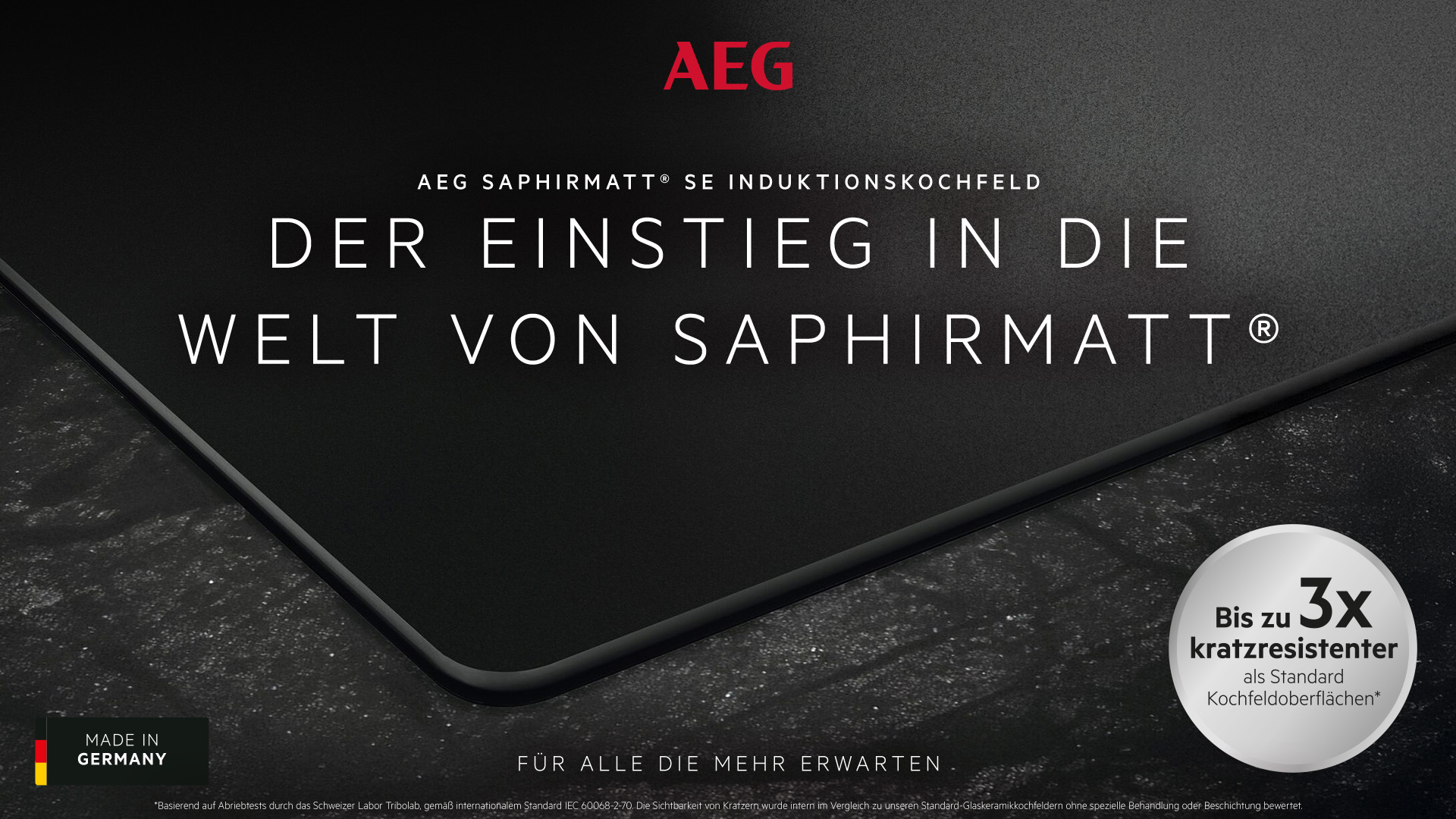 Kochfelder gehören zu den am stärksten beanspruchten Elementen im Küchenalltag. Für Handel und Konsumenten spielt daher die Kombination aus Langlebigkeit, Wertbeständigkeit und dauerhaft hochwertiger Optik eine zentrale Rolle. Die Premiummarke AEG untermauert ihren Qualitätsanspruch jetzt mit einem unabhängigen, international anerkannten Nachweis: Ein externes Prüflabor bestätigt der AEG SaphirMatt®-Kochfeldoberfläche eine bis zu 10-mal höhere Kratzresistenz im Vergleich zu Standard-Glaskeramikoberflächen ohne spezielle Behandlung oder Beschichtung1.